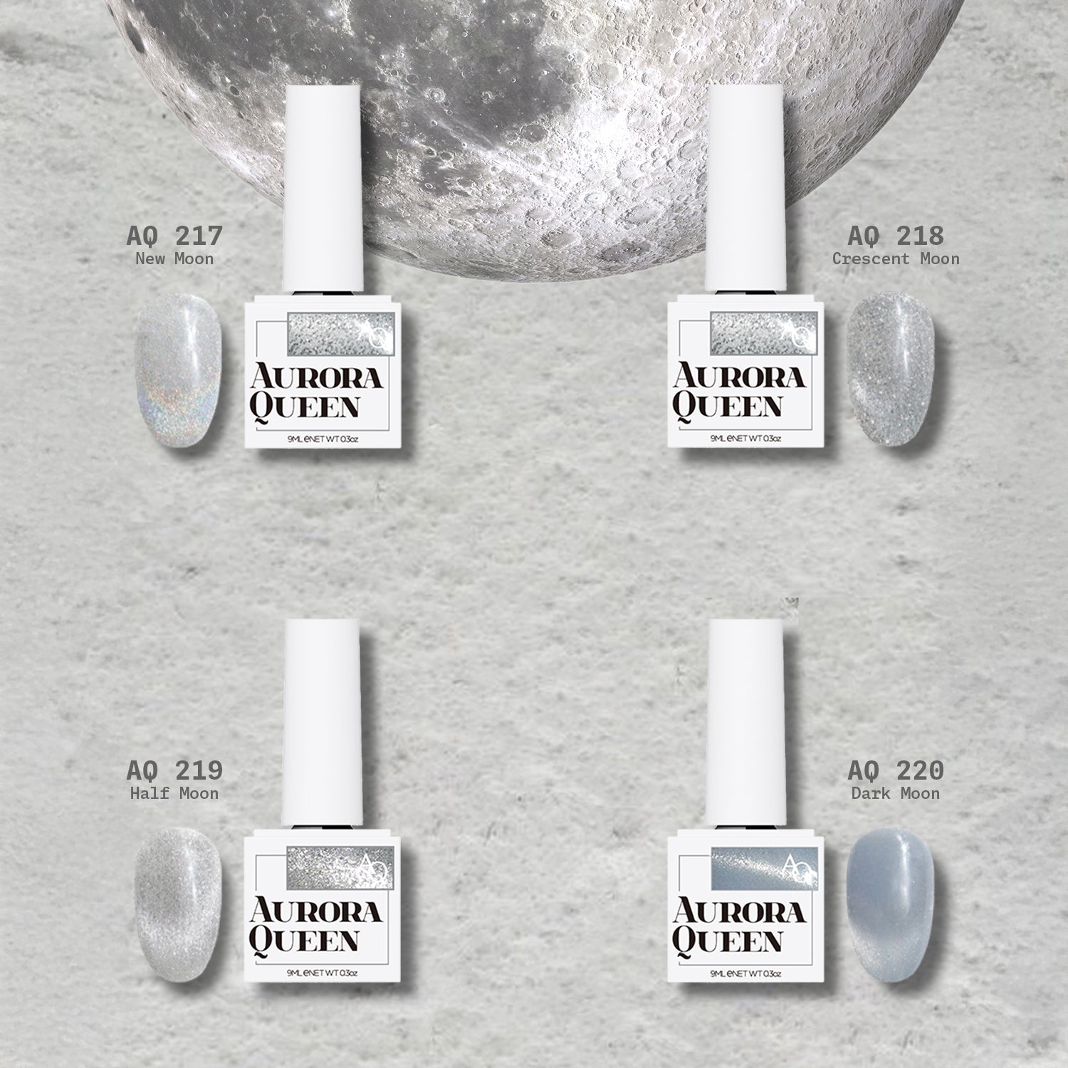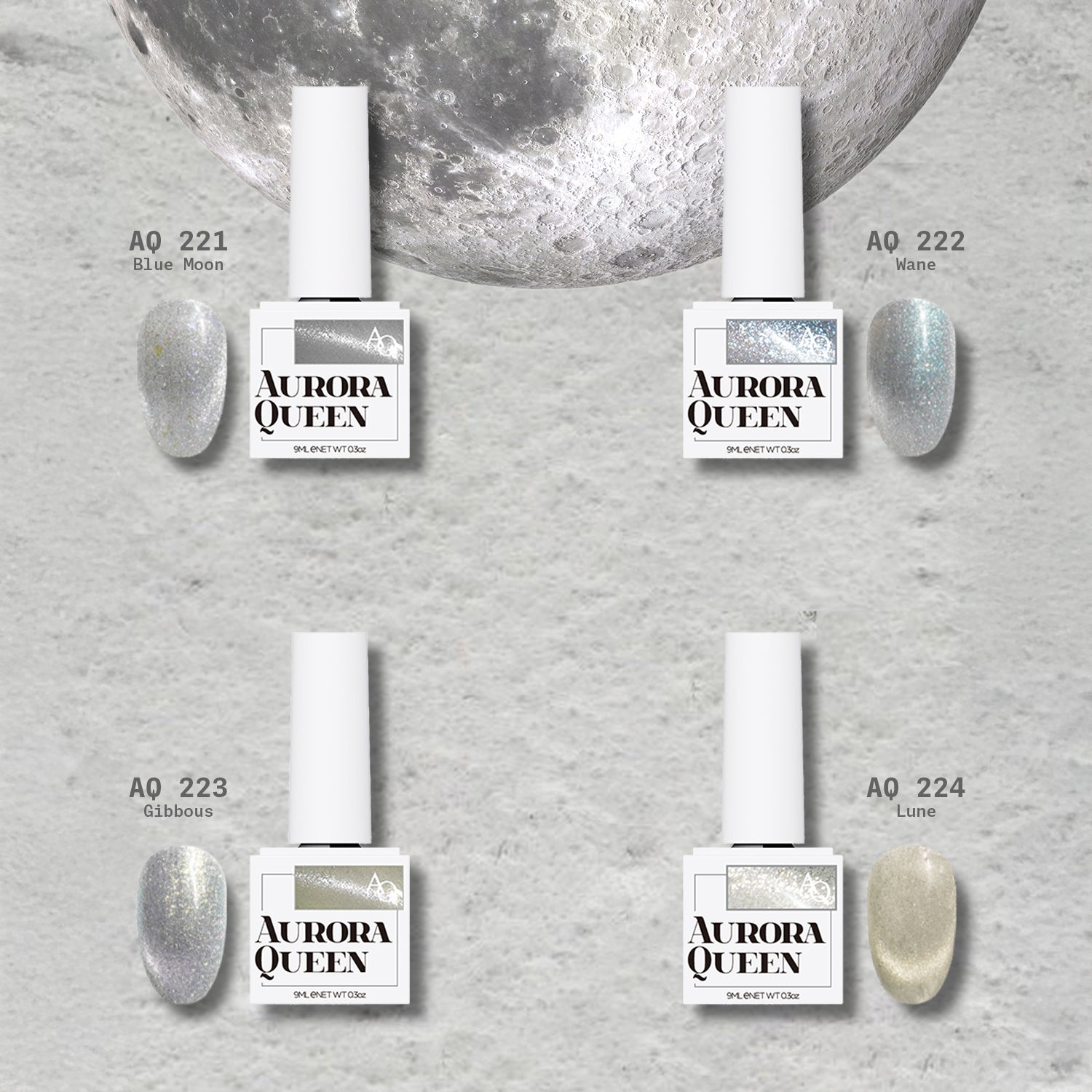 Aurora Queen’in Moon Light koleksiyonu, Kore’de geliştirilen profesyonel manyetik jel oje serisidir.Manyetik pigment teknolojisi sayesinde mıknatısla yönlendirildiğinde ışıltılı, üç boyutlu bir “cat-eye” efekti oluşturur.Akışkan yapısı, yüksek parlaklığı ve dayanıklılığı ile nail artistler ve ileri seviye kullanıcılar için idealdir.