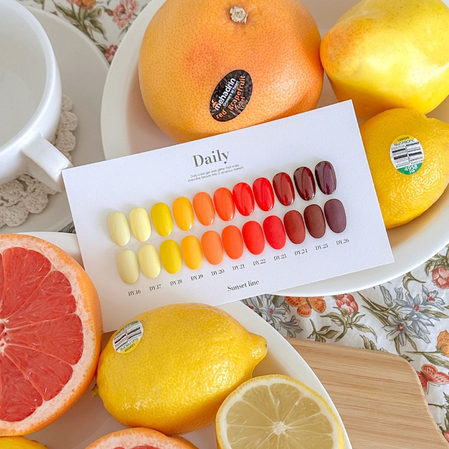 DailyGel’in Sunset Line serisi, güneşin batarken gökyüzüne yansıttığı sarı ve turuncu tonlarını tırnaklara taşır.
